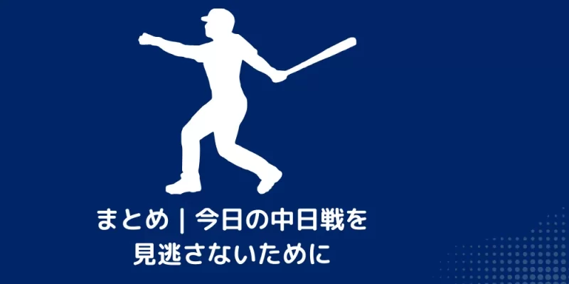 今日の中日戦の中継予定は「【今日の試合】中継・配信情報」から確認できます。