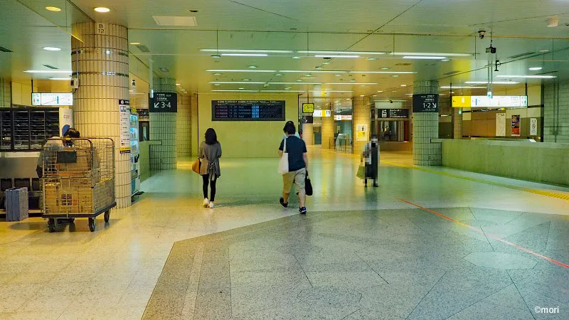 エスカレーターで下のフロア(コンコース)に降りたら、右に曲がります。