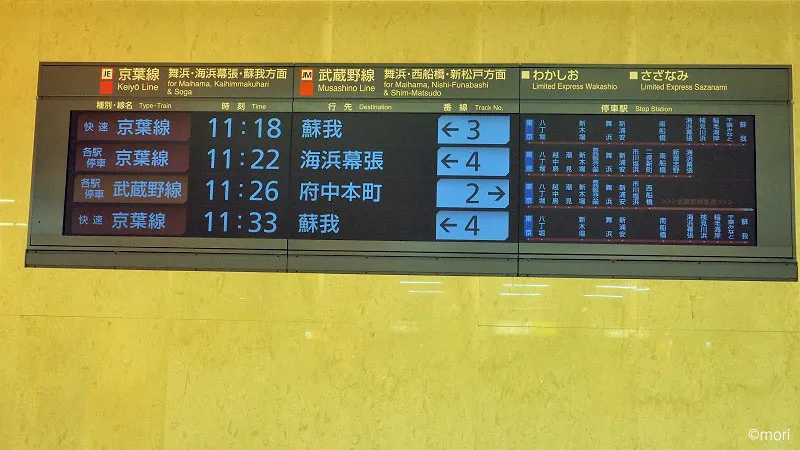 京葉線ホームは1~4番線あるので、電光掲示板に従っていくようにしましょう。